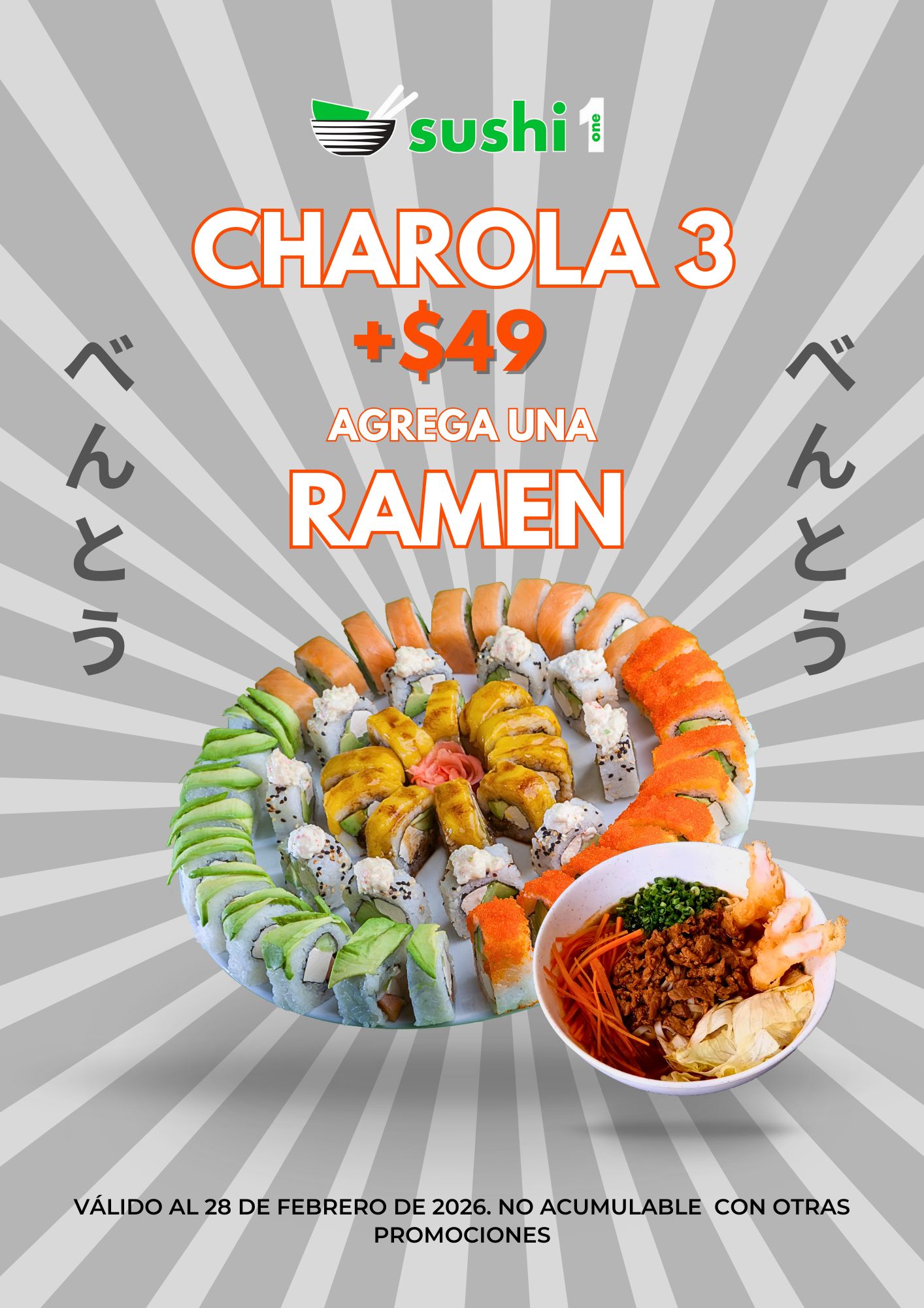 🔥 Charola 3+$49 y agrega 1 Ramen 🍜 | Válida al 28 feb |❄️Perfecto para este frío | 1 ramen por promo | 🍚Aplica en restaurante, para llevar y a domicilio al pedir en línea |🍜 Aplican todas las Ramen y Udon